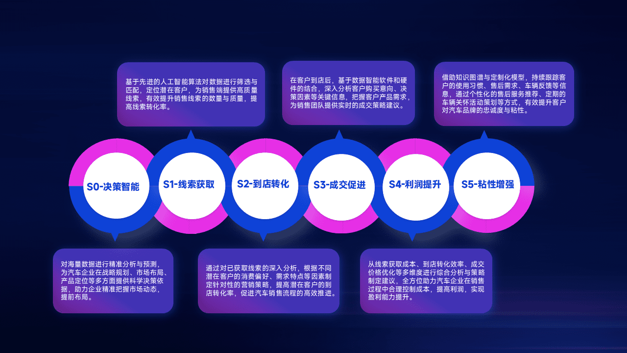 通过拓宽潜在客户来源、、优化线索分配并提高到店转化率,,,,以增强销售效率。。同时,,利用线索数据不断优化分析模型,,,,有效提升转化率,,扩大营销影响力。。。